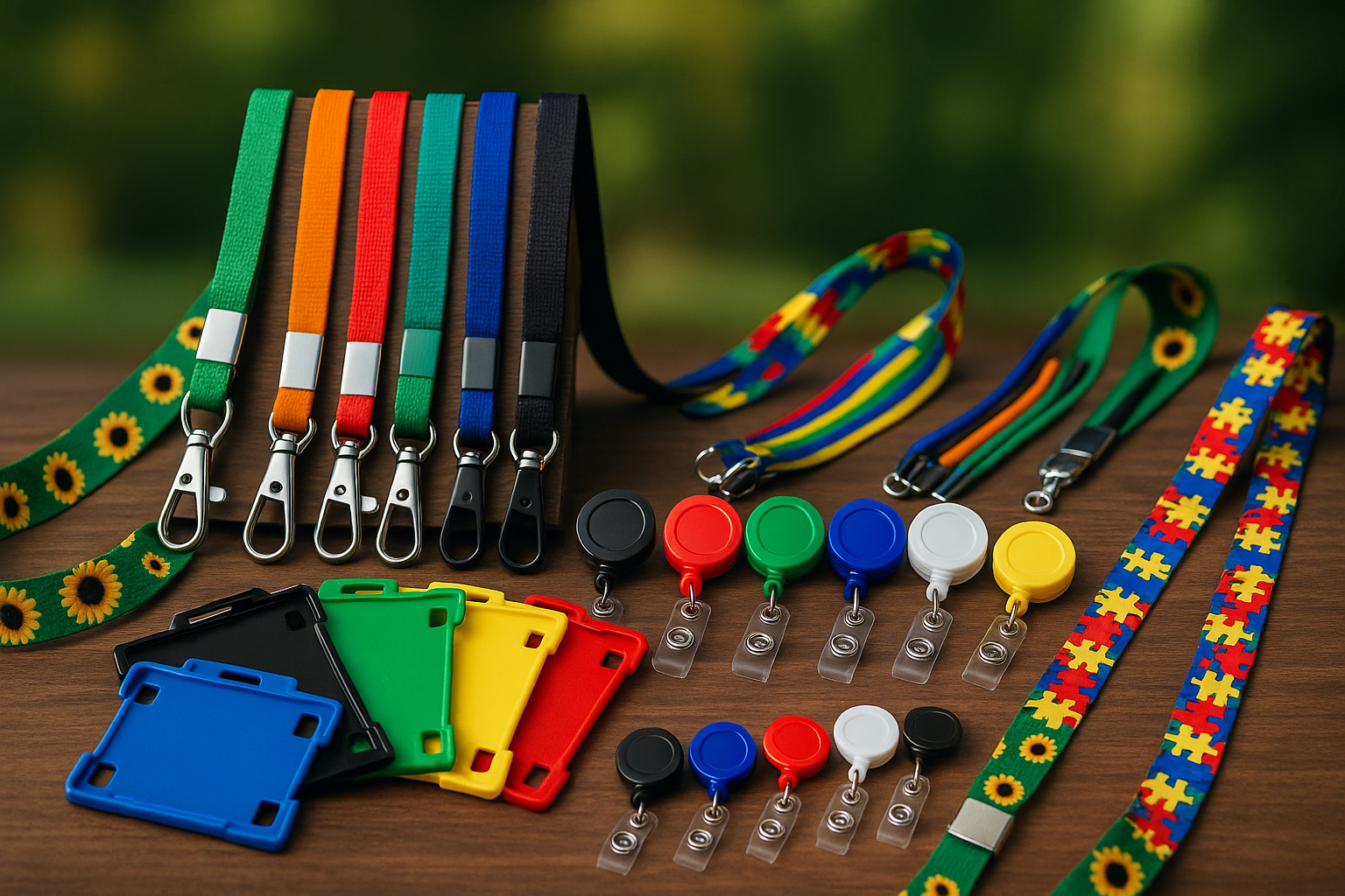 Oferecemos: Cordões em diversos modelos e larguras, Cordões personalizados em impressão digital ou serigráfica , Porta-crachá retrátil (rollers) , Prova digital do layout, E outros acessórios para completar seu kit de identificação